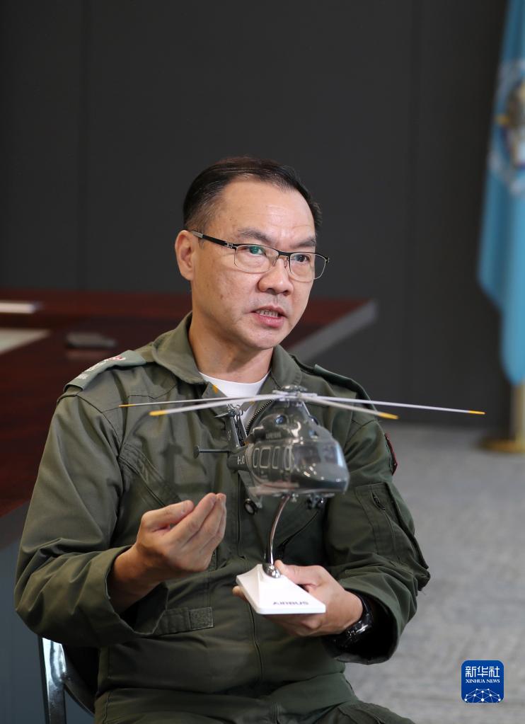 香港特區(qū)政府飛行服務隊總監(jiān)胡偉雄接受記者采訪(6月20日攝)。新華社記者 李鋼 攝