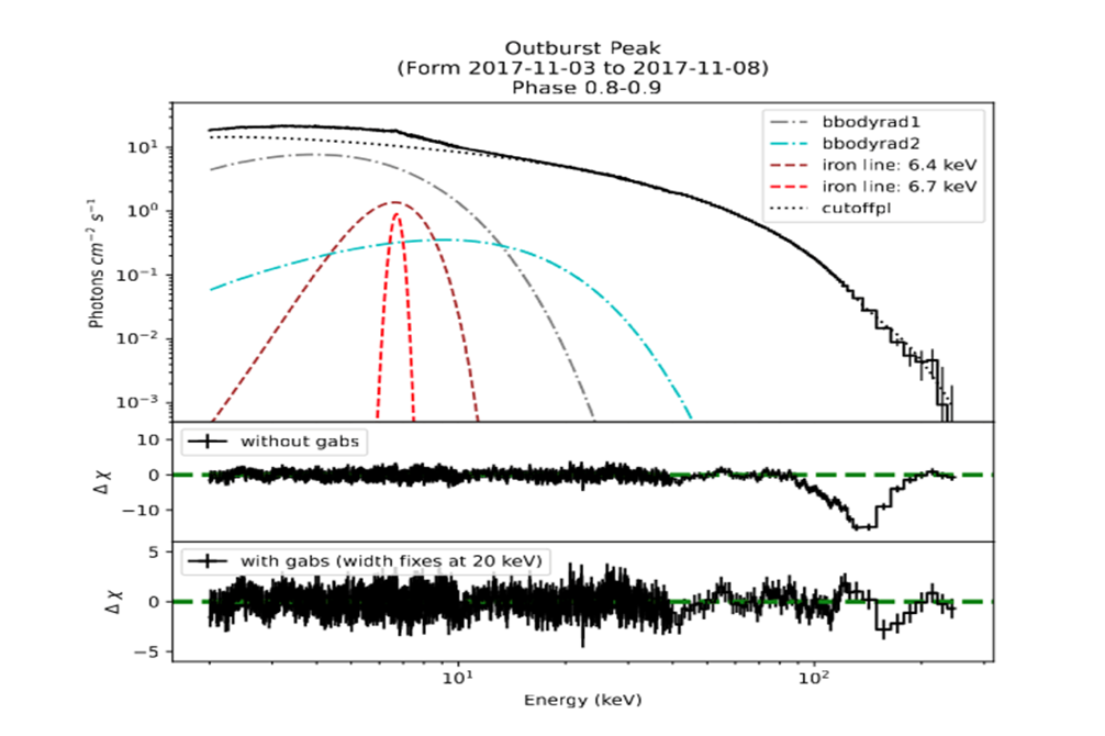 “慧眼”衛(wèi)星在146千電子伏附近觀測到超亮X射線源Swift J0243.6+6124的基頻電子回旋吸收線。(中科院高能物理研究所供圖)