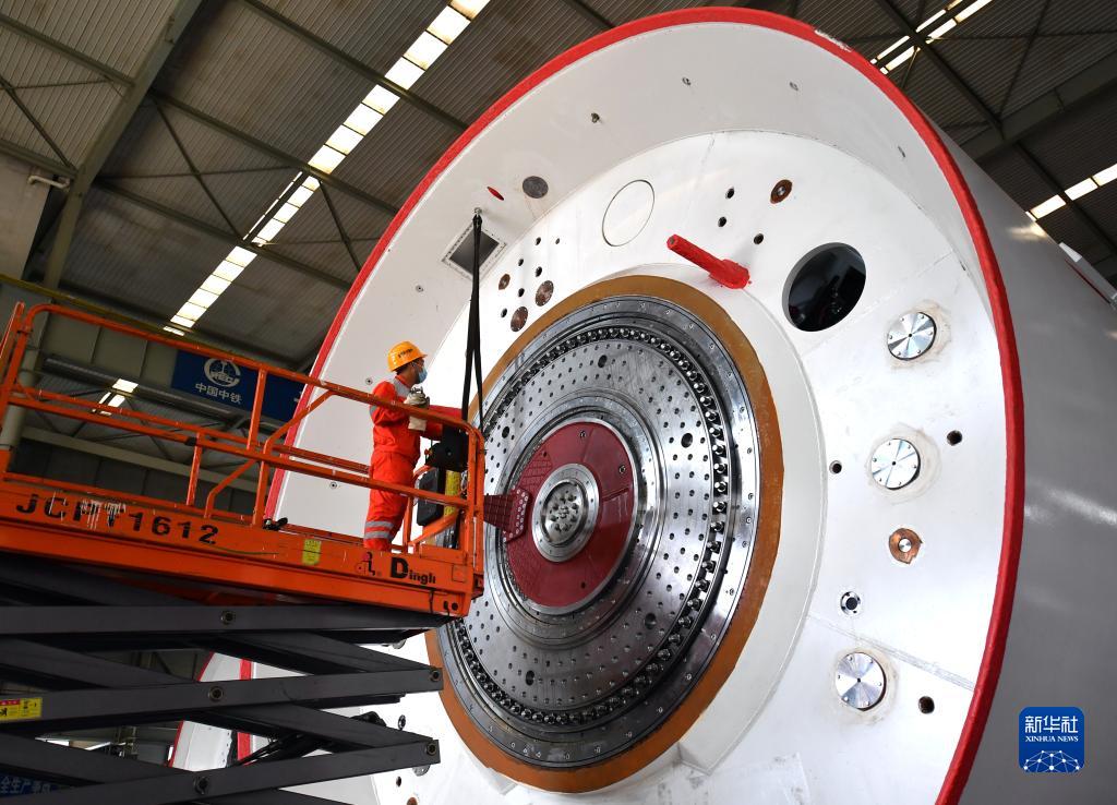 工人在位于河南省鄭州市的中鐵工程裝備集團(tuán)盾構(gòu)機(jī)總裝車間作業(yè)(2020年3月18日攝)。新華社記者 李嘉南 攝