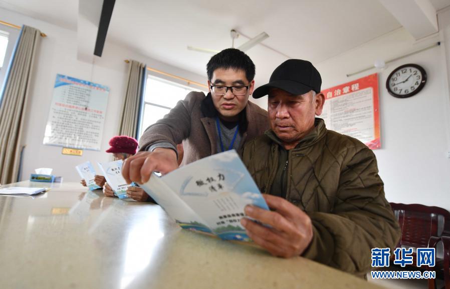 2020年12月17日,在廣西鹿寨縣鹿寨鎮(zhèn)波井村政務(wù)服務(wù)中心,紀(jì)檢監(jiān)察干部(前左)向村民介紹“微權(quán)力”清單。 新華社記者 黃孝邦 攝