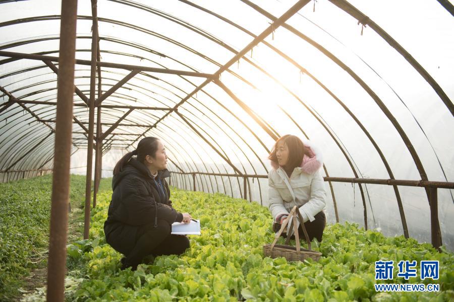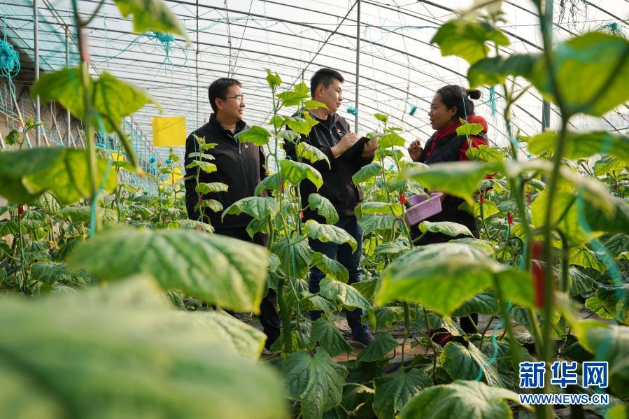 2020年12月10日,河北省巨鹿縣紀(jì)委監(jiān)委工作人員(左一和左二)在巨鹿縣一個農(nóng)業(yè)園區(qū)的大棚向種植戶了解扶貧資金落實情況。 新華社記者 牟宇 攝