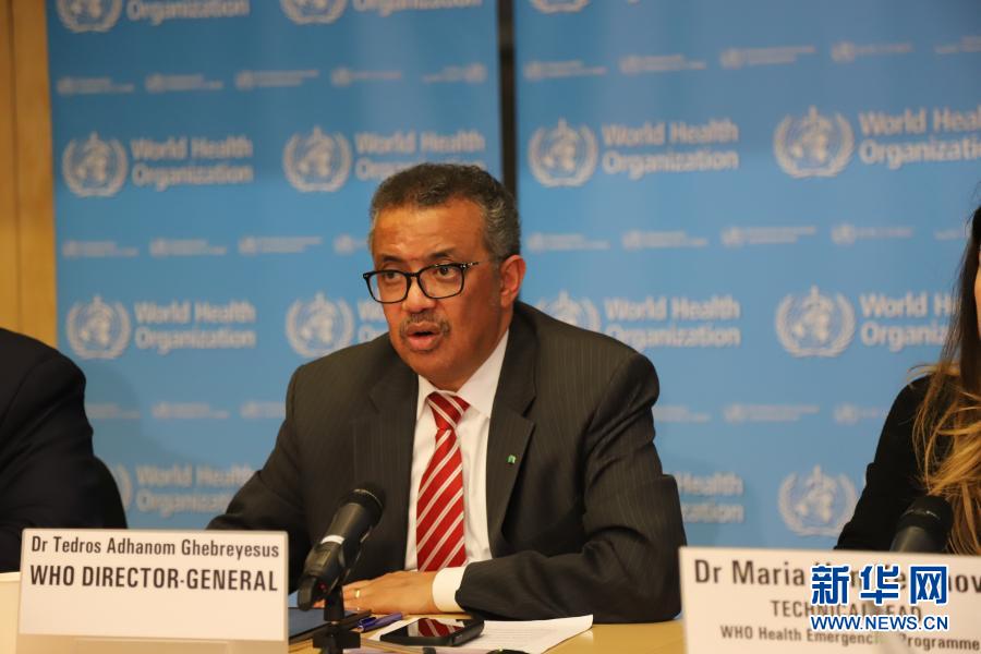 2020年3月11日,在瑞士日內(nèi)瓦,世界衛(wèi)生組織總干事譚德塞在例行記者會(huì)上發(fā)言。譚德塞說,新冠肺炎疫情從特征上可稱為大流行。新華社記者 陳俊俠 攝