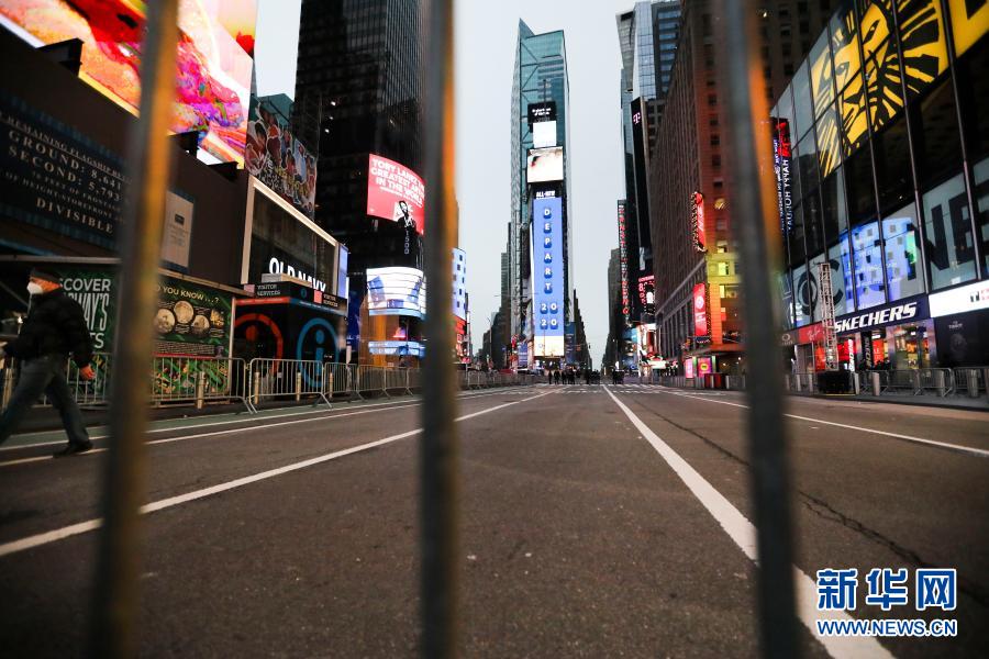 這是2020年12月31日拍攝的空蕩的美國紐約時(shí)報(bào)廣場(chǎng)。新華社記者 王迎 攝