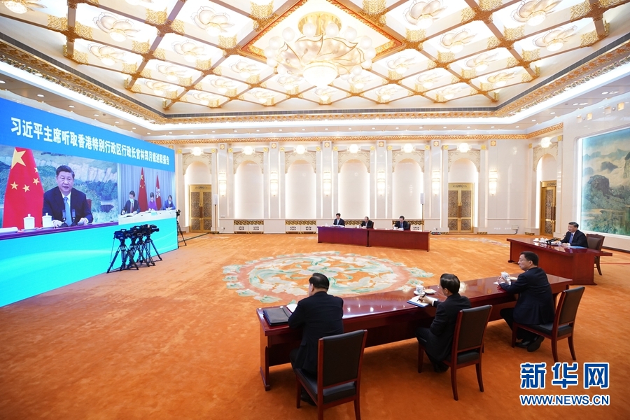 1月27日,國家主席習近平在北京以視頻連線方式聽取了香港特別行政區(qū)行政長官林鄭月娥2020年度的述職報告。新華社記者 劉彬 攝