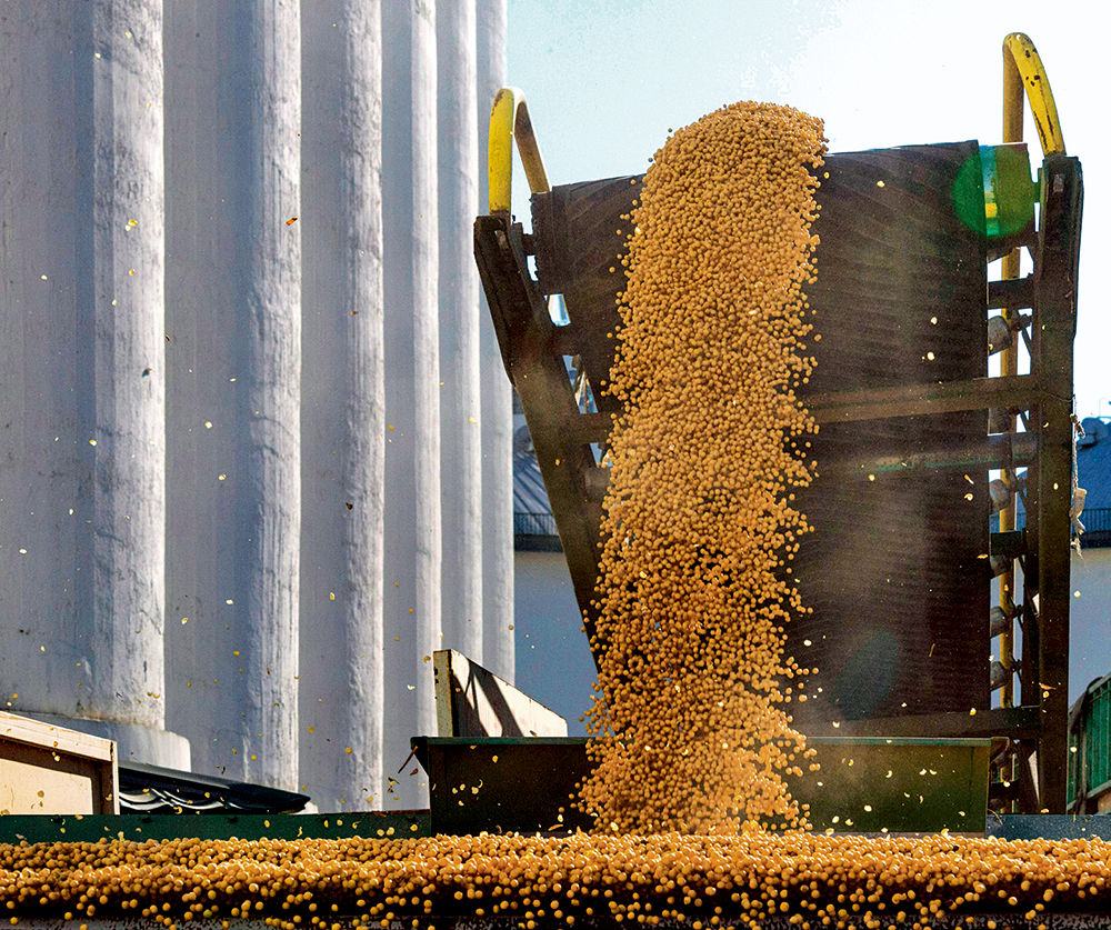 ▲ 中儲(chǔ)糧哈爾濱直屬庫(kù),新收購(gòu)的大豆正在入庫(kù)(2019年11月8日攝) 謝劍飛攝