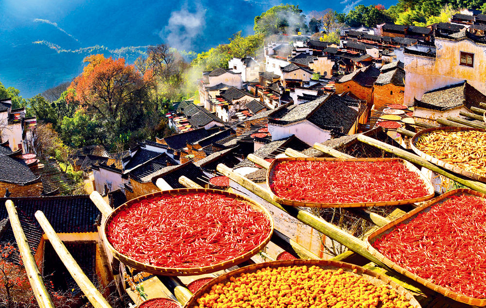 ▲ 江西省婺源縣篁嶺村晾曬收獲的農(nóng)產(chǎn)品(2016年12月16日攝) 曹加祥攝