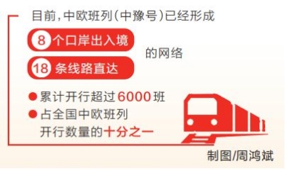 大通道串起大世界。目前,中歐班列(中豫號)已經(jīng)形成“8個口岸出入境、18條線路直達(dá)”的網(wǎng)絡(luò),累計開行超過6000班、占全國中歐班列開行數(shù)量的十分之一。