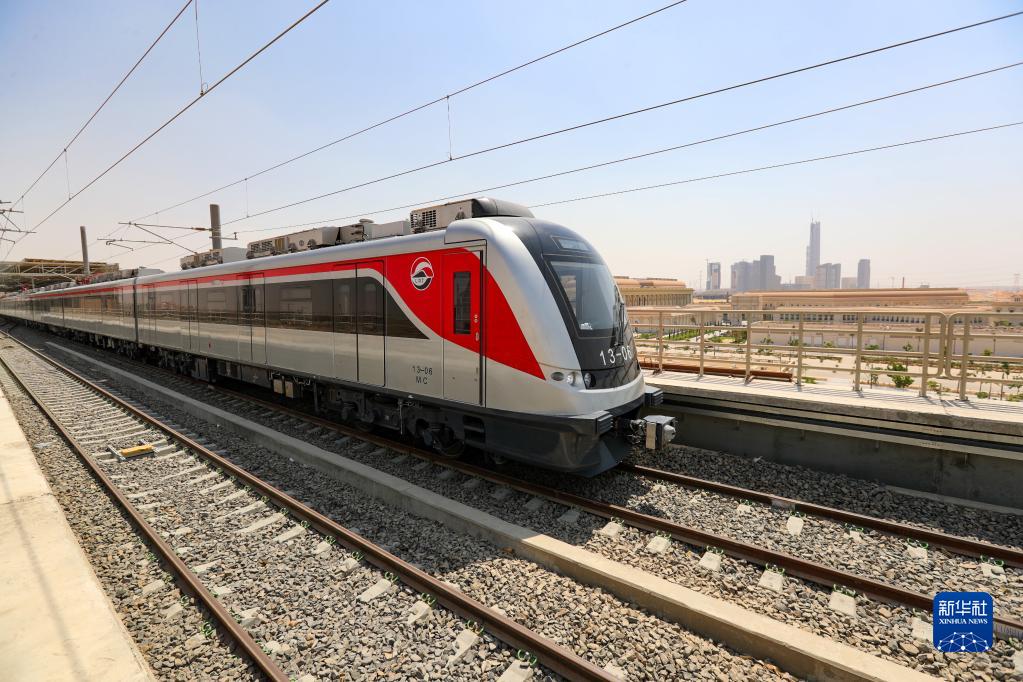 由中國(guó)企業(yè)承建的埃及齋月十日城輕軌鐵路通車試運(yùn)行(2022年7月3日攝)。新華社記者 隋先凱 攝