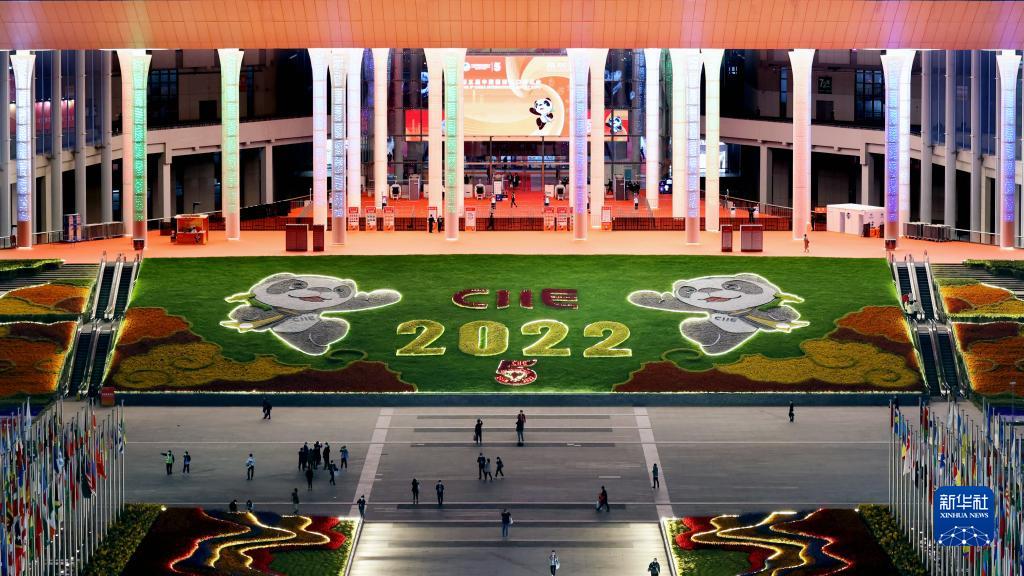 這是2022年11月5日拍攝的第五屆中國國際進(jìn)口博覽會(huì)舉辦地國家會(huì)展中心(上海)夜景。新華社記者 劉穎 攝