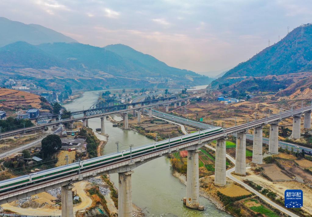 2022年12月26日,蜿蜒千里的新成昆鐵路全線貫通運(yùn)營(yíng)。復(fù)興號(hào)動(dòng)車組從成都南站發(fā)出,沿著現(xiàn)代化的鐵路,奔馳在崇山峻嶺間。