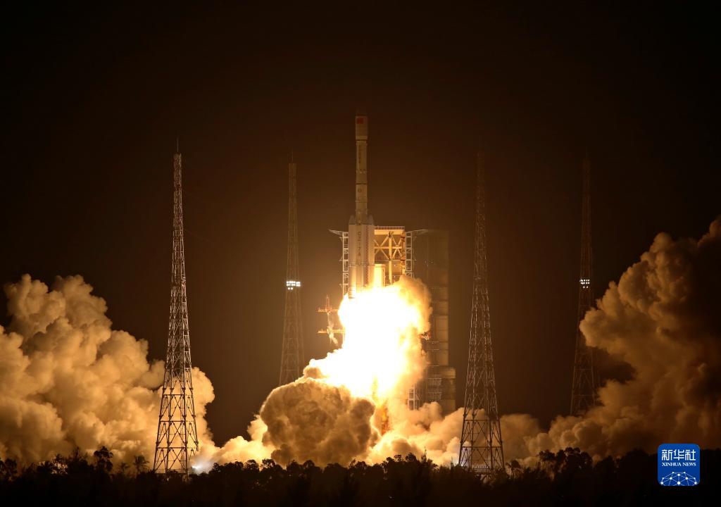2021年12月23日18時(shí)12分,我國(guó)在文昌發(fā)射場(chǎng)用長(zhǎng)征七號(hào)改運(yùn)載火箭,成功將試驗(yàn)十二號(hào)衛(wèi)星01星、02星發(fā)射升空。衛(wèi)星順利進(jìn)入預(yù)定軌道,發(fā)射任務(wù)獲得圓滿成功。新華社發(fā)(胡煦劼 攝)