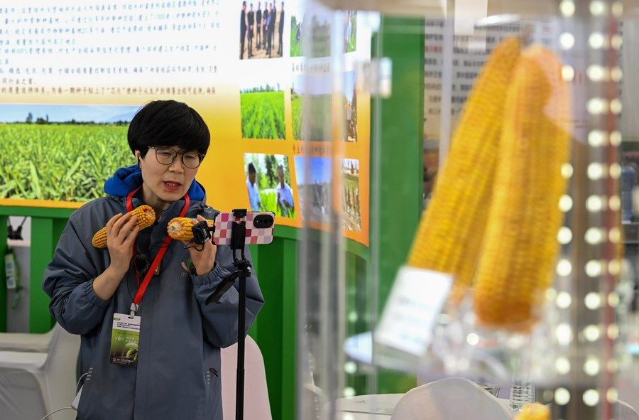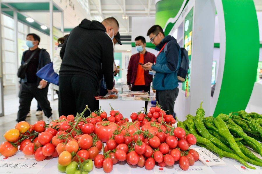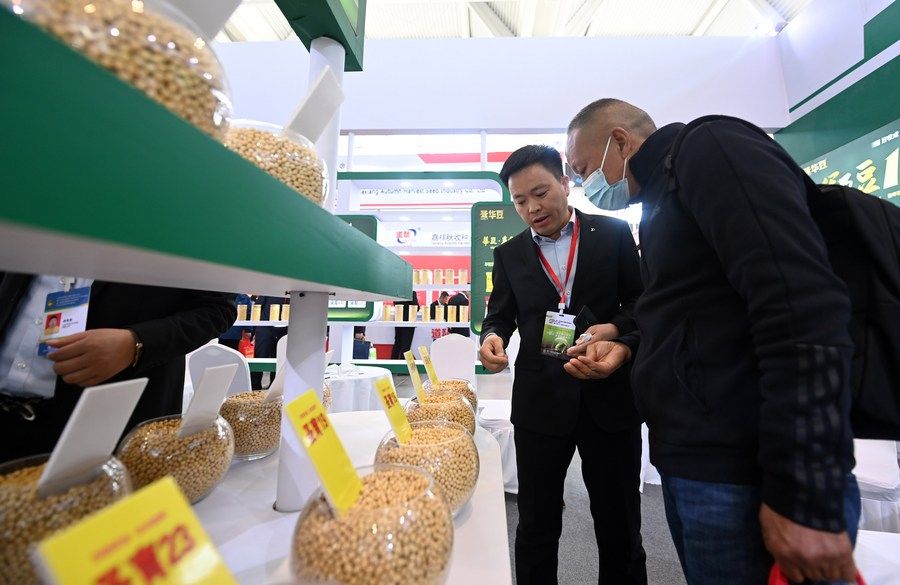 3月18日,參觀者和展商在展會(huì)上交流。當(dāng)日,第十四屆中國(guó)國(guó)際種業(yè)博覽會(huì)暨第十九屆全國(guó)種子信息交流與產(chǎn)品交易會(huì)在天津市開(kāi)幕。新華社記者 趙子碩 攝