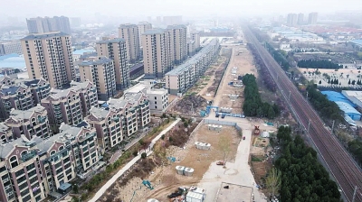 在開封市金明華府小區(qū)南側(cè),延長(zhǎng)線項(xiàng)目開始從橋梁向路基過(guò)渡,距離隴海鐵路僅數(shù)十米。