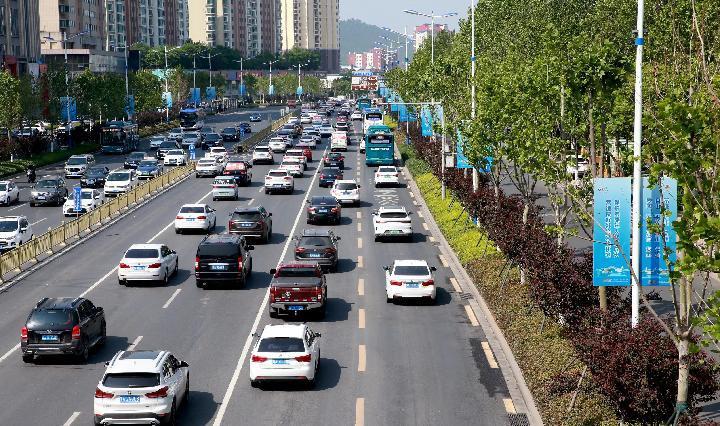 4月27日,山東省濟(jì)南市經(jīng)十路公交車道平峰期允許社會(huì)車輛通行。(新華社記者王陽(yáng)攝)
