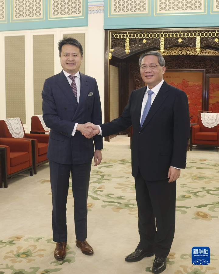 4月27日上午,國(guó)務(wù)院總理李強(qiáng)在北京中南海紫光閣會(huì)見(jiàn)世界知識(shí)產(chǎn)權(quán)組織總干事鄧?guó)櫳P氯A社記者劉衛(wèi)兵攝
