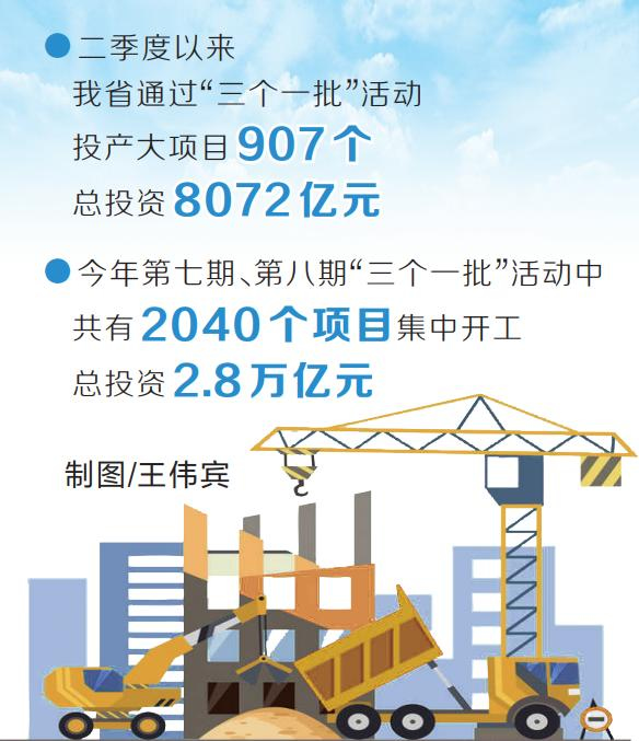 省發(fā)展改革委相關(guān)負(fù)責(zé)人介紹,二季度以來,我省通過“三個一批”活動投產(chǎn)大項(xiàng)目907個,總投資8072億元,為經(jīng)濟(jì)高質(zhì)量發(fā)展提供強(qiáng)力支撐。