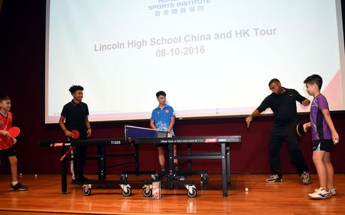 2016年10月8日,香港乒乓球運(yùn)動(dòng)員與林肯中學(xué)學(xué)生進(jìn)行交流比賽。當(dāng)日,來自美國(guó)華盛頓州塔科馬市林肯中學(xué)的師生到訪香港體育學(xué)院。