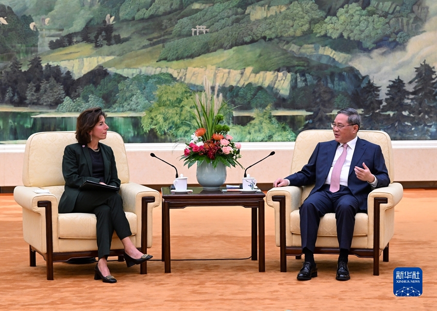 8月29日下午,國務(wù)院總理李強在北京人民大會堂會見美國商務(wù)部長雷蒙多。新華社記者 饒愛民 攝