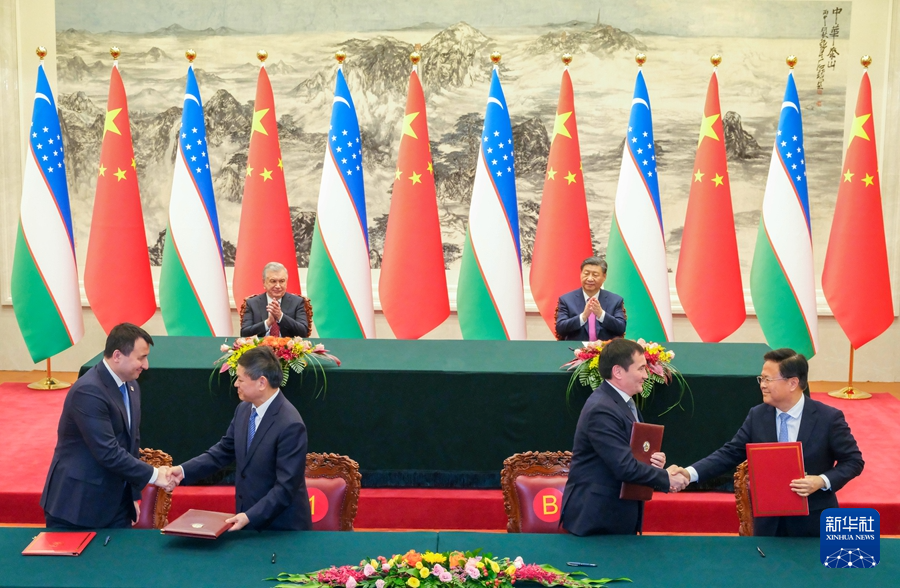 ??會談后,兩國元首簽署并發(fā)表了《中華人民共和國和烏茲別克斯坦共和國關于新時代全天候全面戰(zhàn)略伙伴關系的聯(lián)合聲明》,并共同見證簽署共建“一帶一路”、全球發(fā)展倡議、經濟技術合作、互聯(lián)互通、環(huán)境保護、新能源、科技、人文、農產品準入、地方等領域一系列合作文件。