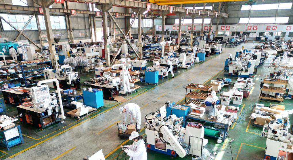 ??2月20日,工人在貴州省黔東南苗族侗族自治州丹寨縣金鐘經濟開發(fā)區(qū)一家生產機床的企業(yè)車間忙碌(無人機照片)。新華社發(fā)(余天英 攝)
