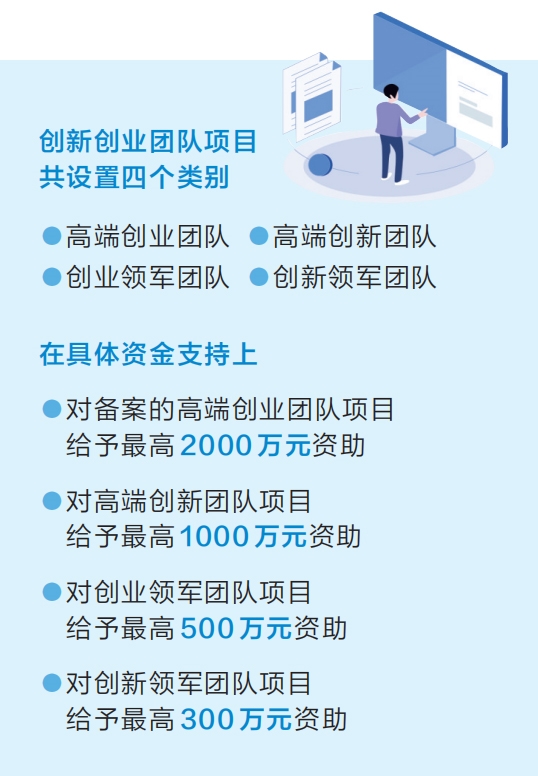 據(jù)介紹,創(chuàng)新創(chuàng)業(yè)團(tuán)隊(duì)項(xiàng)目共設(shè)置高端創(chuàng)業(yè)團(tuán)隊(duì)、高端創(chuàng)新團(tuán)隊(duì)、創(chuàng)業(yè)領(lǐng)軍團(tuán)隊(duì)、創(chuàng)新領(lǐng)軍團(tuán)隊(duì)四個類別。