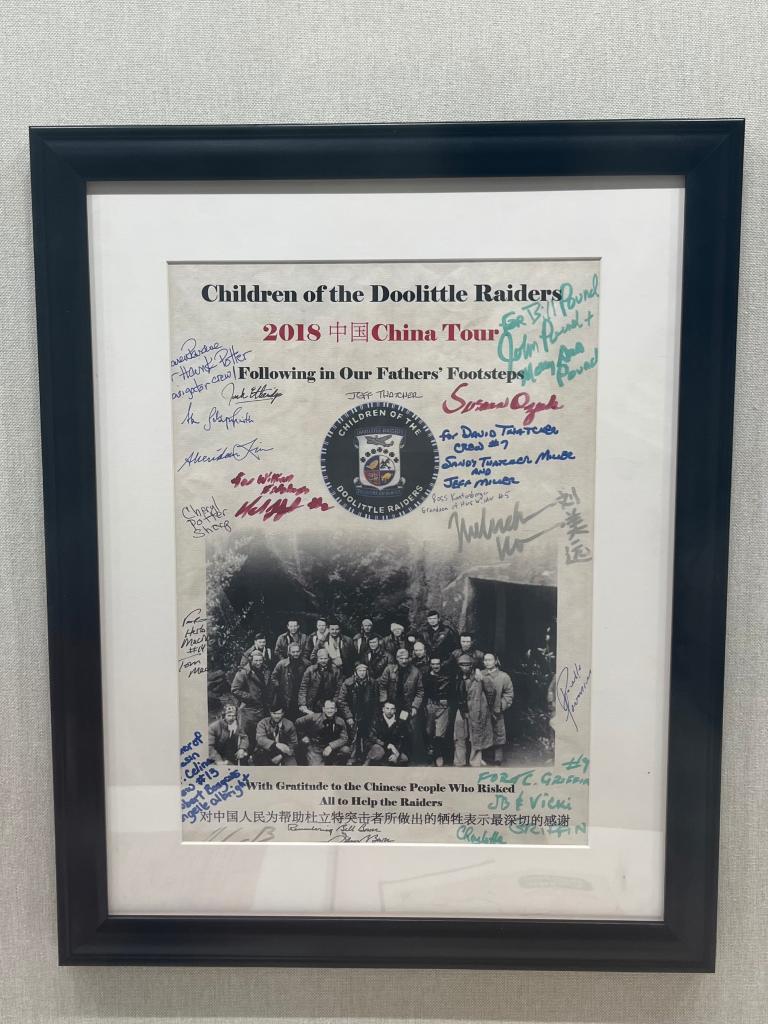 ??2018年,美國杜立特突襲者子女協(xié)會來衢州江山參加活動時(shí)的簽名,目前在江山市博物館珍藏。