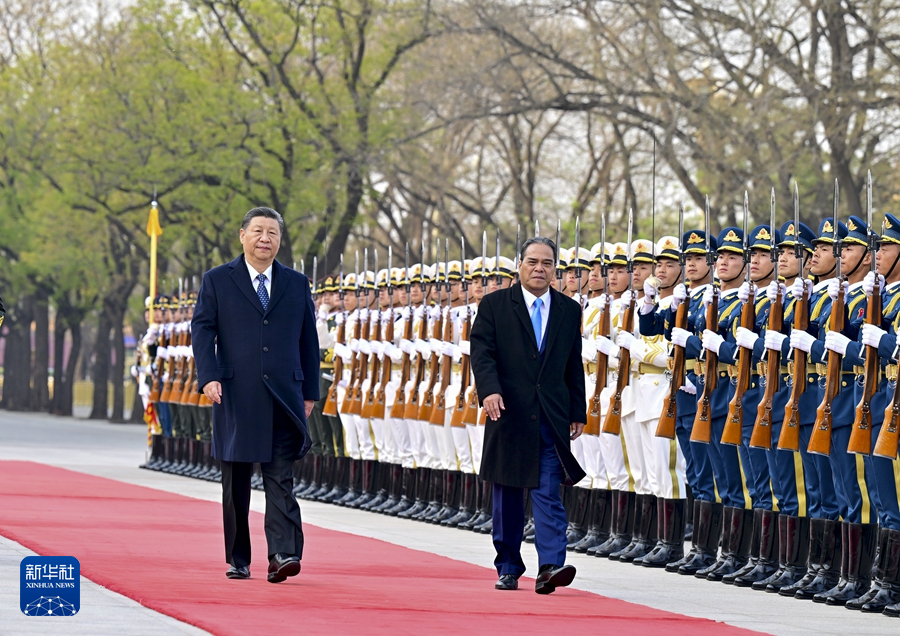 ??4月9日下午,國家主席習(xí)近平在北京人民大會堂同來華進(jìn)行國事訪問的密克羅尼西亞聯(lián)邦總統(tǒng)西米納舉行會談。這是會談前,習(xí)近平在人民大會堂東門外廣場為西米納舉行歡迎儀式。新華社記者 殷博古 攝