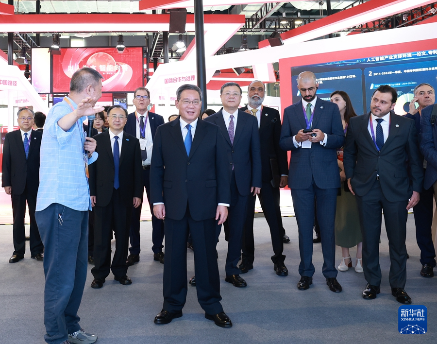 ??7月4日,國務院總理李強在上海出席2024世界人工智能大會暨人工智能全球治理高級別會議開幕式并致辭。這是開幕式后,李強同與會外方嘉賓、國際組織代表共同巡館。新華社記者 王曄 攝