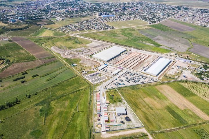 ??這是2019年5月21日在塔吉克斯坦丹加拉拍攝的中泰紡織廠(無人機照片)。新華社記者 張若玄 攝