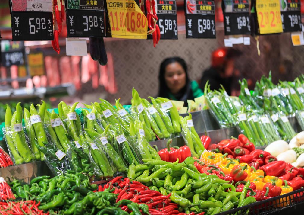 ??3月9日,消費(fèi)者在貴州省從江縣一家超市選購(gòu)蔬菜。新華社發(fā)(羅京來(lái)攝)