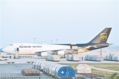 ??每天,鄭州機場國際快件中心熱鬧非凡,多條分揀設備開足馬力,服裝、飾品等跨境電商貨物正組板,數(shù)小時后將裝入飛機運往國外,快速送達當?shù)叵M者手中。來自境外的貨物航班每天都有10多架次,近千噸(國內(nèi))貨物從鄭州機場出發(fā)飛往世界各地。