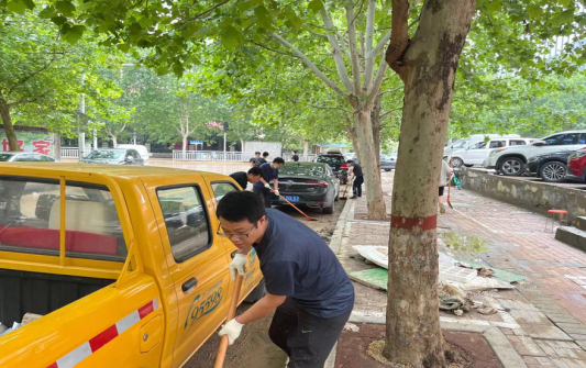 暴雨引發(fā)的積水給城區(qū)道路上留下了厚厚的淤泥,大家拿著鐵鍬、穿著膠鞋,沿民航路、英協(xié)路一帶清理道路兩邊淤泥及障礙物,幫助社區(qū)居民恢復(fù)正常生活。志愿者們以實際行動弘揚了“奉獻(xiàn)、友愛、互助、進(jìn)步”的志愿服務(wù)精神。